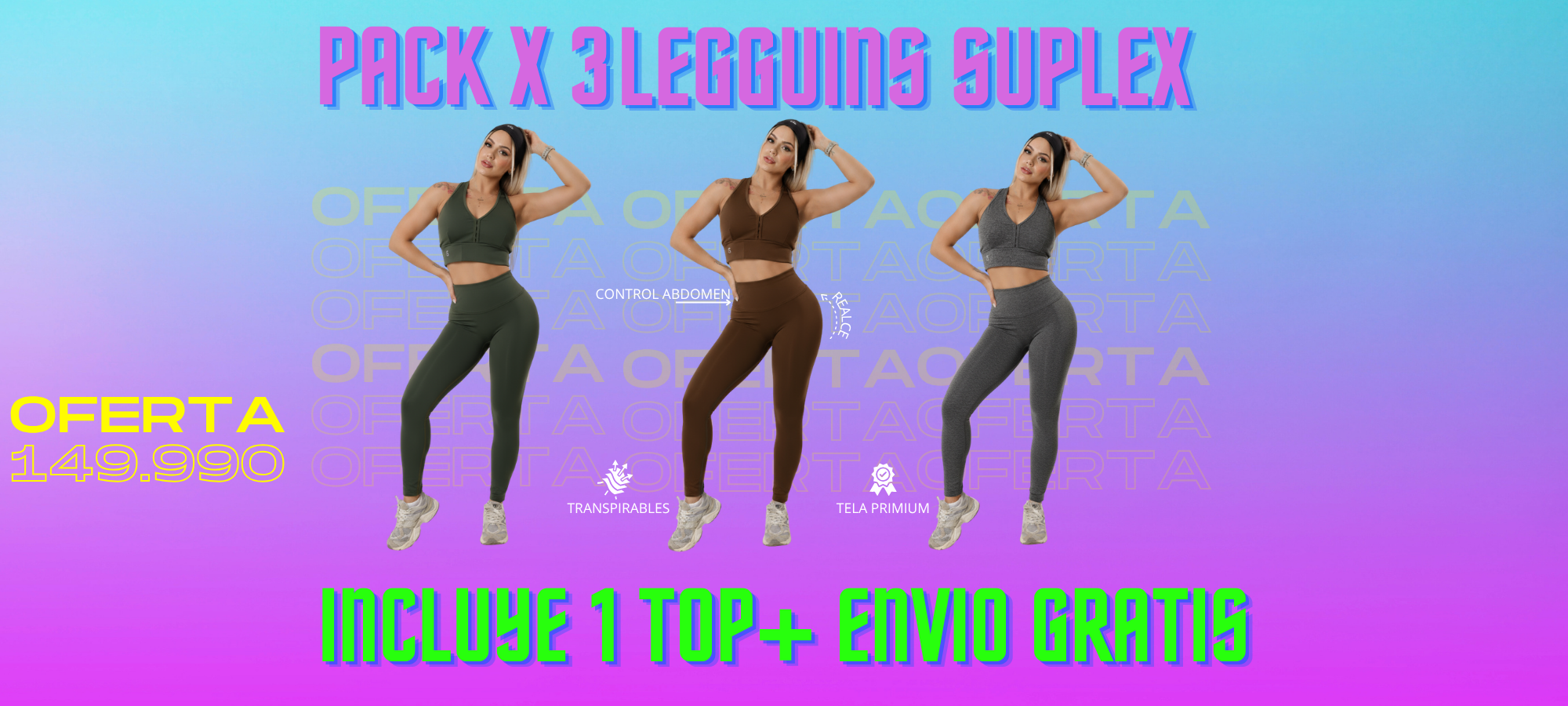 PACK DE 3 LEGGUINS SUPLEX + TOP DE OBSEQUIO Y EN VIO GRATIS